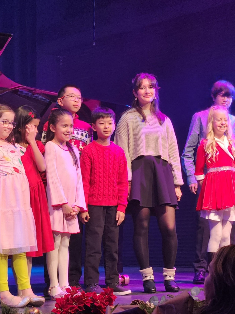 Another amazing winter recital has just wrapped up for the students, families and teachers of Skyline Music. With record participation (almost 80 students) and attendance (over 200 people), we hosted a full afternoon of song and performance at the Polaris Theatre in Balzac. We had a huge variety of students performing with all ranges of experience, right down to a student who only had 3 lessons. There a few duets with child and parent along with teacher performances and some established performers. All types of music from Chopin, Jingle Bells to Radioheads “Creep” as arranged by our own student, Dave were played on a fog filled stage with a fabulous Steinway Model D grand piano. There were some wonderful snacks and treats for each of the recitals closing acts and a great celebration of talent. We can proudly say this was our best set of concerts to date. We are always so proud of every student who takes the stage to share their talent with us. Recitals are a wonderful opportunity to learn about preparation, performances and persistent practice! We are looking forward to another recital in the new year with even more exciting performances!
