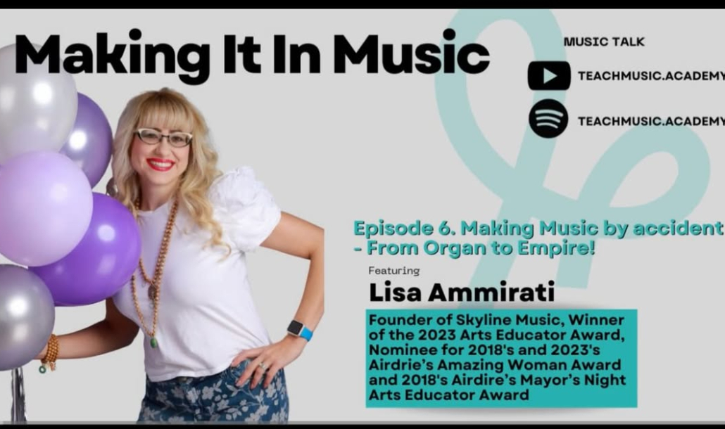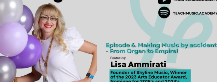 We are SO excited to feature a new podcast created by business owner and musician, Looi Tan of Musica Academy. On this latest episode, she interviews our very own founder of Skyline Music, Lisa Ammirati. You will hear Lisa’s own journey through her first days “teaching stuffies math”, to her University experiences, how Skyline Music found its name and location, and of course, to her current life as an educator of over 28 years and business owner of almost 19! This is an interview for all listeners, whether in the arts or other areas of life that require the same dedication and belief in the unknown. Listen along with us to hear stories (often funny) of confusion, chaos, and how being signed up to learn the “wrong instrument” can led to a fantastic profession with connections, conversation, mentors and music!